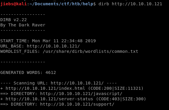 I played around with it for a bit but didn’t give us too much information. Luckily dirb has finished and it gave us some results, let’s check it out.