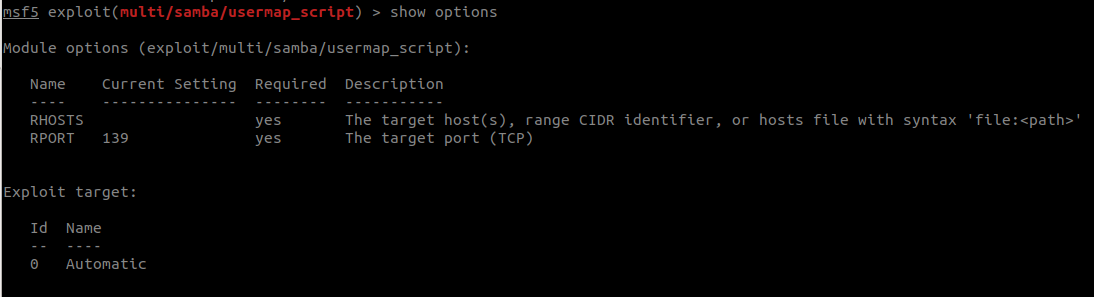 Looks like we only have to set the rhost, let’s go ahead and do that.